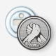 Silver round medal with two hands in arm wrestling.
