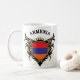 Cool crest design with national flag of Armenia colours and caption: Armenia. Great Armenian pride gift.
