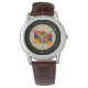 The watch looks really great! Very sharp and well done. The leather band is really nice, though for a man's watch I think it should be longer. Unfortunately, it isn't big enough for my husband's wrist but I will get a replacement because he is very excited to wear it!