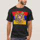 I give wanted to give this a 4 instead of a 5 because these Basic DARK T0shirts run unexpectedly SLIM or Narrow. Which is great if you do not have a potbelly, but I have a paunch. It isn't the shirt's fault that I've got a beer belly. The design and shirt itself is a quality cotton shirt. The color is more of a deep purple, but still a very pretty color. The Basic DARK T-shirts run a bit SLIMMER than the Basic Ts. The neck is a fraction narrower (or seems to be narrower) also. I'm a paunchy middle-aged woman and my neck is 12 inches (31cm) thick and the neckline fell about the same as in the photo of the man, and I had the desire to tug it a bit. So if you're a thick necked man or like loose shirts, be aware these are slimmer shirts. Once I get rid of my lockdown paunch it'll look great. The shirt washed well in cold water with no apparent bleeding. We don't have a dryer, so it hung dry. Did not shrink. Love the colors and the design. The design looks smaller on my shirt than it does on the model on-line. But still, it looks good on the shirt. The printing looks as it does on the model, just the size seems fractionally smaller. Washed garment in cold water, hung dry and design appeared unaffected.