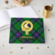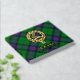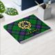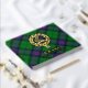 Clan Armstrong crest badge surrounded by a strap and buckle over tartan background. Custom front, back and spine text.