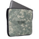 This laptop sleeve looks exactly as it does in picture. I actually thought is was too small until I put my laptop in it. It's a bit snug, but it fits. Figure it will stretch a bit, hopefully seams hold. Them seem good for now. I didn't have any personalization done, looks great as is.