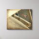 Good quality canvas printing. Stretched nicely over the frame. Light framing; study but won't be too heavy to hang. Gray-scale vintage american flag design. Turned out really beautiful.