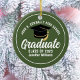 This army green custom senior graduate Christmas ornament features your high school or college name for the class of 2025. Customise with your graduating year under the chic white handwritten script and black grad cap for a great personalised graduation gift.