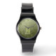 Army green olive geometric mesh pattern Monogram Wrist Watch. Monogrammed Personalised gift watch accessory for him with your custom initial and name. Army green olive gradient geometric mesh pattern. Army green gradient geometric mesh pattern triangles ombre. Army green dark olive hue for soldier gear, camo. It mimics natural military landscapes, toughness, endurance, resilience. Earthy undertones connect to nature, grounding. Symbolises military legacy, outdoor utility.