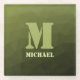 Army green olive geometric mesh pattern Monogram Glass Coaster