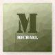 Army light green geometric mesh pattern Monogram Glass Coaster