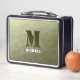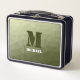 Army light green geometric mesh pattern Monogram Metal Lunch Box