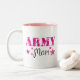 This design features pink camouflage ARMY stencil text, with a girly black font that says "Mum," with lots of pink stars around. Customise this design to make it your very own!