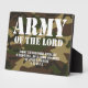 2 Timothy 2:3 Therefore endure hardness as a good soldier of Jesus Christ... Army of the Lord Christian merchandise features green, black and brown camoflauge camo background with white stencil military style text. Fun and cool religious gear for the church youth or men.