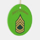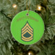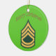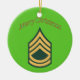 Army Sergeant First Class Christmas Ornament. This ornament is decorated on one side with the Army Sergeant First Class insignia and the words "Merry Christmas" and on the other with Santa Claus carrying a bag of goodies.