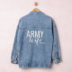 Celebrate the strength and love of an army wife with our exquisite custom jean jacket. A thoughtful and meaningful gift, this jacket displays "Army Wife" in modern script alongside an established date, making it the perfect choice for a bride-to-be or a cherished anniversary gift.