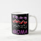 Black purple red designed mug with text words