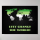 Value poster with the map of the world in the colour of the aromantic pride flag, a design on a black background; the text 'Let's Change the World' is a template text and can be changed.