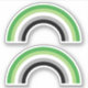 Custom-cut vinyl stickers with two rainbows in the colours of the aromatic pride flag. Green, white, grey, and black flag of the aromantic pride movement