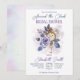 Around the clock bridal shower invitation with a vintage clock and lilac rose and dusty blue leaves, it's time around the clock themed bridal shower.