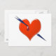 A red heart pierced by an arrow with a single drop of blood. An emotive postcard that sends an unmistakable message. Let someone know how you feel about them.