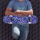 A skateboard with a hand drawn arrows design.