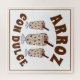 Design features an original illustration of delicious arroz con dulce, a Puerto Rican rice pudding comprised of pearl rice simmered with coconut milk, coconut cream, evaporated milk, spices, and rum-soaked raisins. This sweet treat is especially popular in Puerto Rico during the holiday season, and can also be found in countries such as Colombia and Venezuela.