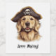 Arrr Matey Pirate Golden Retriever Dog Skull Wine Label