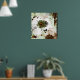 abstract piece with green flower in the middle, with paint drips and splatter, with green leaves.