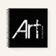 Art by your name personalised typographic sketchbook spiral notebook. White text on a black background.