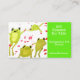 A cute business card design of green frogs painted in watercolours suitable for an art class for kids, an rt teacher or children's art school or business. Text is fully customisable to suit your needs.