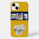 This beautiful honeycomb coloured phone case features script typography with name personalisation and a three picture collage enveloped in a blue ink frame. .It's artsy, beautiful and utterly untique.