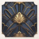 Gorgeous coaster with a navy blue and gold Art Deco pattern