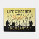 This unique, antique-looking design is made to look like 20s Art Deco from the Gatsby era. The two men and one woman in the design originally appeared in a real 1920s candlestick advertisement in a newspaper. Here, they have been remade into musicians and party-goers. The man on the left plays the piano and the woman casually plays the drum while sipping her wine. The other man enjoys the music. The inspirational, original text says, "Life can be Keener with a Sunny Demeanour." It's all made in shades of black and a sunny, golden yellow / orange. Travel back to the Roaring Twenties with this luxurious art.