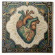 Embrace the beauty of anatomy with this striking Art Deco-inspired ceramic tile. Featuring a vibrant teal and green anatomical heart, intricately detailed with warm copper and accented by radiant gold rays, this design brings a unique blend of vintage charm and bold artistry to any space. The elaborate geometric border, reminiscent of the Art Deco era, frames the central heart motif with elegance and sophistication, making it a perfect focal point for your home decor. This piece tells a story of passion and life, ideal for those who appreciate detailed, symbolic artwork and a touch of retro flair.
