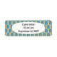 These return address labels have an art deco design of arches and upside-down Ys repeating across the design in turquoise and yellow on a field of white. Want different colours? Message me.