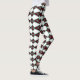 These leggings have an art deco design of triangles and diamonds that form arrows in seafoam and brown.