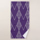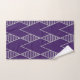 This towel set has an art deco design of diamonds, some with horizontal lines, in silver on a field of blue.