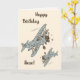 Art Deco Bi-planes - blue Happy Birthday + name. Card