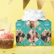 Wrap your present in Art Deco style with this custom photo gift wrap! A seamless geometric pattern, with diamond shapes, stars and stylish typography. Personalise the template with three favourite photos, the recipient's name and birthday age. A luxurious and unique way to celebrate a special birthday for family and friends! Printed colours: blue-green teal, white and gold. Available with a choice of a matte or glossy finish.