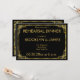 Elegant black and gold wedding rehearsal dinner invitations in Great Gatsby Art Deco style with changeable text