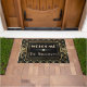 This custom doormat features a glamourous Great Gatsby, roaring 20s theme. A beautiful, gold coloured art deco pattern is placed over a black background. A vintage frame borders the welcome text, printed in a retro Broadway style font. A custom name is printed at the bottom.