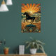 Art Deco Black Stallion Beach Waves Sunset Poster