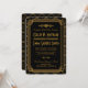 These wedding invitations feature a black and gold colour palette, a geometric frame, geometric patterns, and other stylistic details all inspired by Art Deco and the roaring twenties. You can customise the sample text fields to your liking.