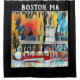 A creatively designed colourful shower curtain image of the Boston Swan Boats on a black background using an applied art deco filter.