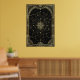 Map the wonders of the deep universe with the "Aura Celestial" Star Chart poster. This expansive artwork features a central, multi-pointed starburst engine that serves as the anchor for a vast web of connected constellations and stellar coordinates. The entire celestial scene is viewed through a grand, arched Art Deco window, detailed with elegant fan motifs, fluted columns, and geometric borders in signature teal and metallic gold.