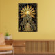 This high-contrast geometric architecture print is ideal for luxury home offices, modern living rooms, or vintage-inspired interiors. The intricate line work and sun rays provide a sophisticated, Mid-Century Modern focal point for any wall.
