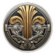 Gorgeous Art Nouveau ceramic knob with a gold and silver Grecian design. This beautiful ceramic knob has a metallic, Grecian look on black background. Update your dresser, kitchen and bath cabinets,