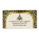 Art Deco chandelier black, gold label featuring a black chandelier, a border in Art Deco style and black and golden floral damask on beige/ecru. This elegant design is a modern approach to a vintage/retro style that resembles that of the Roaring 20’s and The Great Gatsby. It is part of a wedding set and is completely customisable.