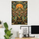 Art Deco Cherry Blossom Tree Throne Gold Teal Poster