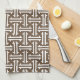 Kitchen towel in an Art Deco Chinese Fretwork pattern tile in deep taupe tan and white