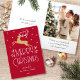 Art Deco Christmas Reindeer Photo Deep Red Gold Holiday Card