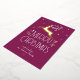 Add a touch of luxury to your holiday cards with real gold foil! This elegant design features vintage-style illustrations inspired by the opulence of the Art Deco era. It includes a leaping reindeer, festive leaves and stars, paired with stylish retro typography. Personalise the template with your name, a personal greeting, and a favourite photo. A unique design that combines timeless style with a modern twist! The real foil elements are available in gold, silver, or rose gold. Printed colours: deep pink-purple, white and gold foil.