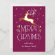 Art Deco Christmas Reindeer Photo Plum Gold Foil Holiday Card